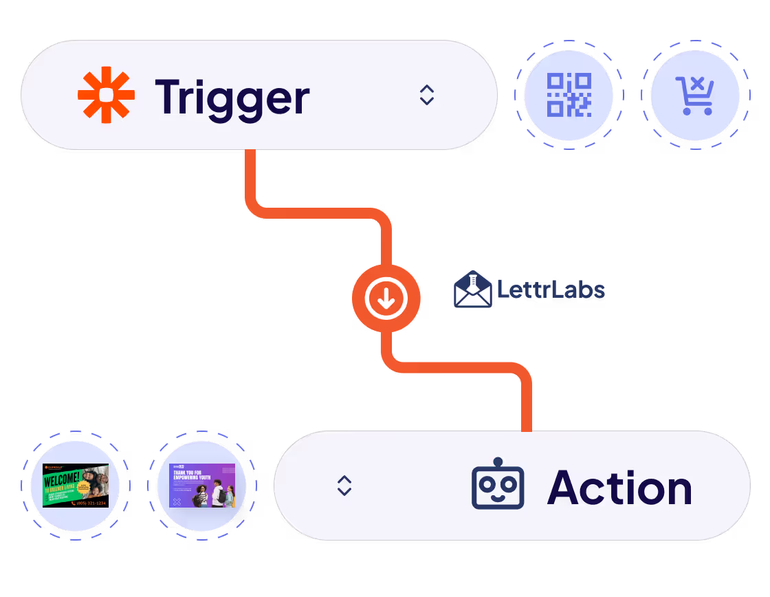 Trigger mail from events (ballot drop, pledge‑to‑vote, donation, signup) and coordinate with email/SMS/digital.