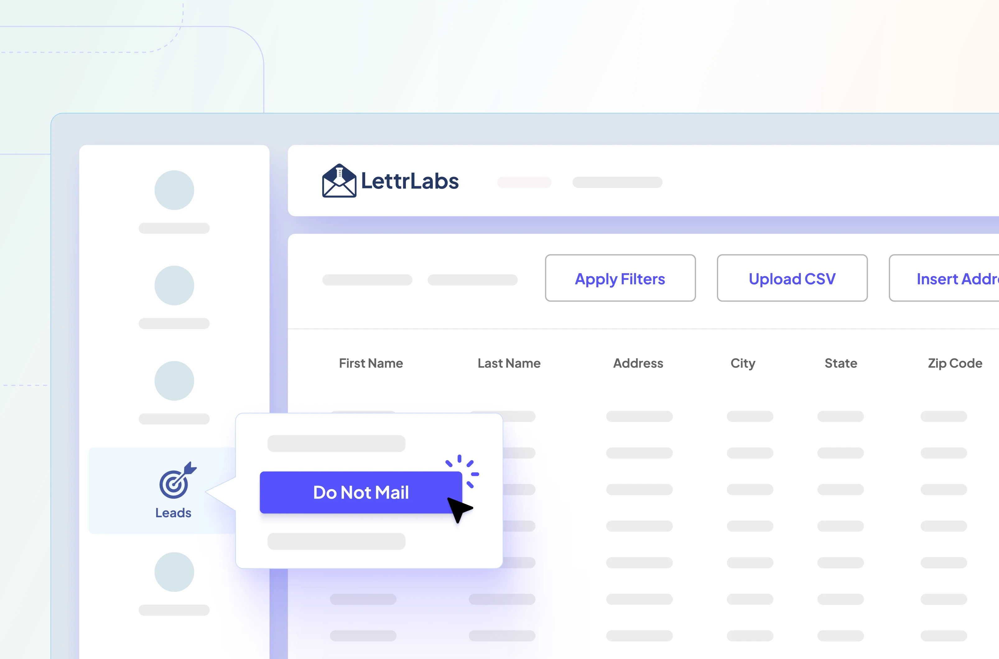 - Maintain your own suppression list outside LettrLabs, then remove matches before upload.