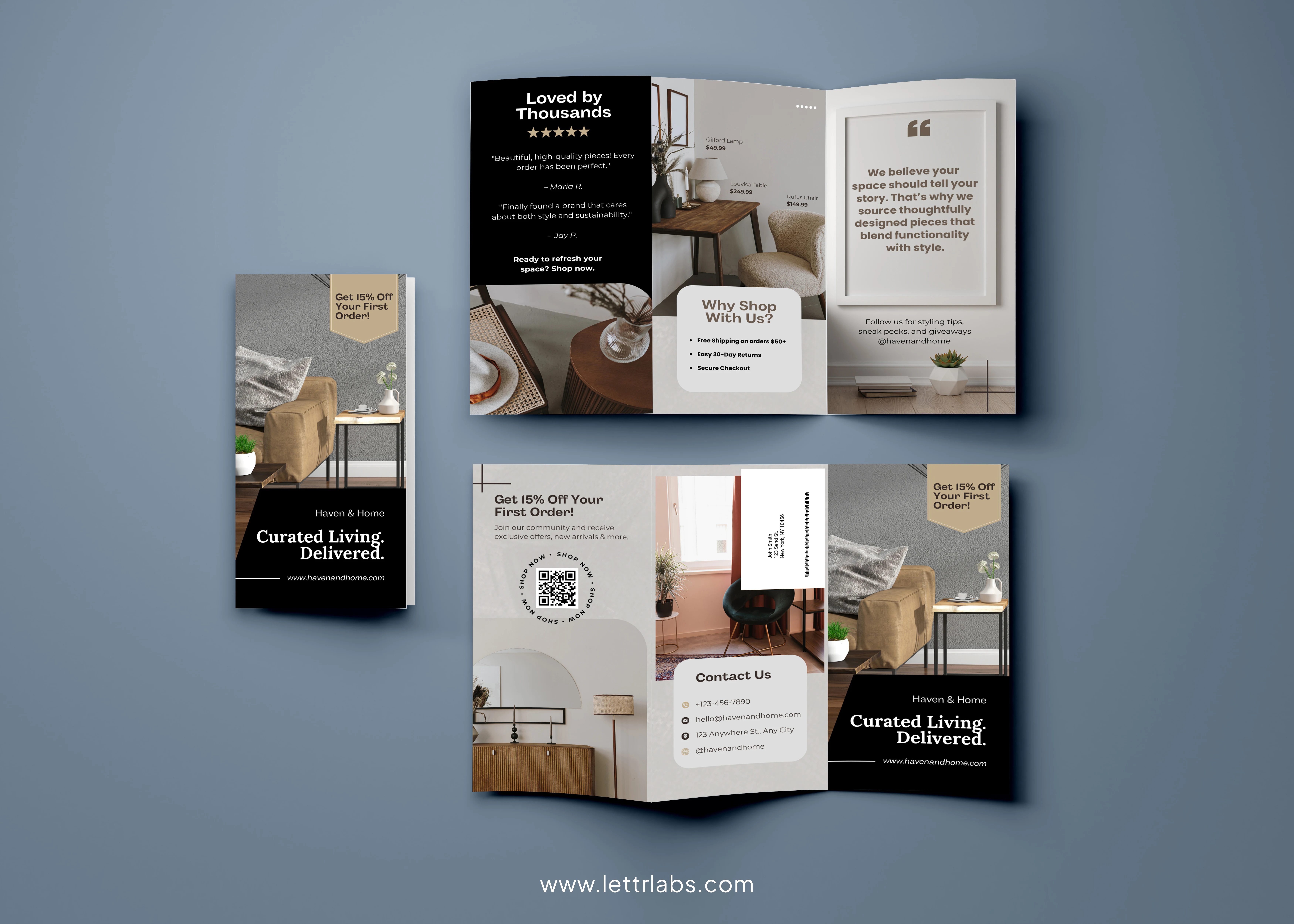 Click below to access the Canva template for this trifold postcard. It includes pre-set fold lines, trim zones, and safe area guides — so you can design confidently without starting from scratch.