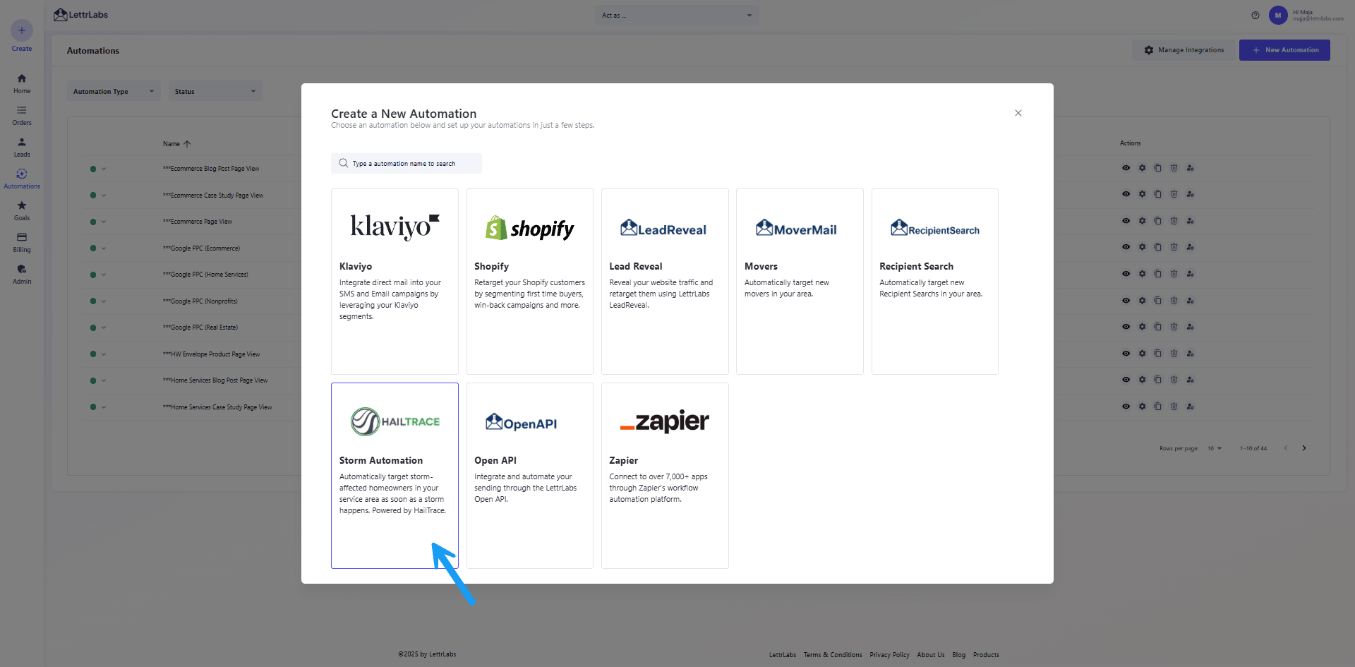 From your LettrLabs dashboard, click Automations in the left menu.